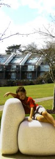 The entrance into the Awareness Centre is via a lift. The lift is stark and unadorned, it contains no signs and no buttons, all control is taken from you. It looks odd in the garden, as if it shouldn't really be there. It is slow and dark as you descend into awareness. Here all is hard concrete, a big emptiness and oblique views of the greenery in the garden above.